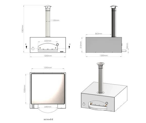 A szögletes kialakítású, fa- és gázüzemű pizzakemence nagy kapacitást és hatékony működést kínál pizzériák számára. A sütőkő hőmérséklete 400–480 °C, amely fával kb. 35, gázzal 40 perc alatt érhető el.